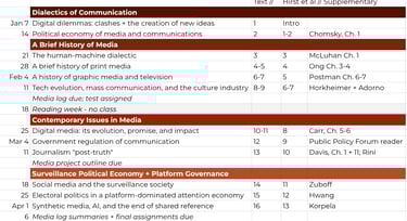 Hirst et al refers to chapters in Communication and New Media (supplementary) which are not assigned but will be referenced considerably in order to understand the Canadian media context